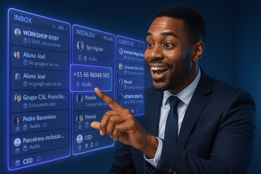 Imagina poder enxergar todas as conversas como se fossem cartões numa parede — com colunas de “Novo lead”, “Negociação”, “Fechamento”, “Pós-venda” — e arrastar cada cliente de um estágio pro outro, sem esquecer de ninguém.